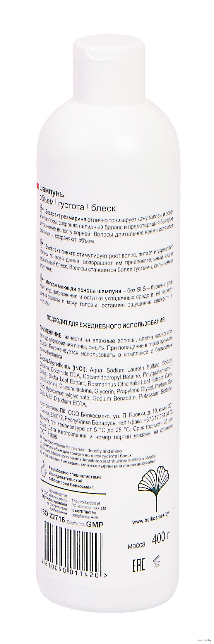 Aqua, Sodium Laureth Sulfate, Sodium Chloride, Cocamide DEA, Cocamidopropyl Betaine, Polyquaternium-7, Ginkgo Biloba Leaf Extract, Rosmarinus Officinalis Leaf Extract, Calcium Gluconate, Gluconolactone, Glycerin, Propylene Glycol, Parfum, Sodium Hydroxymethylglycinate, Sodium Benzoate, Potassium Sorbate, Citric Acid, Disodium EDTA.Мы используем файлы cookie для обеспечения удобства работы с сайтом и его контакта с пользователем.