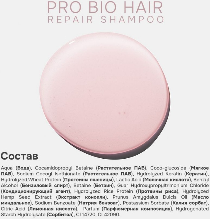 Аqua (вода), cocamidopropyl betaine (растительное пав), coco-glucoside (мягкое пав), sodium cocoyl isethionate (растительное пав), hydrolyzed keratin (кератин), hydrolyzed wheat protein (протеины пшеницы), lactic acid (молочная кислота), benzyl alcohol (бензиловый спирт), betaine (бетаин), guar hydroxypropyltrimonium chloride (кондиционирующий агент), hydrolyzed rice protein (протеины риса), hydrolyzed hemp seed extract (экстракт конопли), prunus аmygdalus dulcis oil (масло миндальное), sodium benzoate (натрия бензоат), postassium sorbate (калия сорбат), citric acid (лимонная кислота), parfum (парфюмерная композиция), hydrogenated starch hydrolysate (сорбитол), ci 14720, ci 42090.Мы используем файлы cookie для обеспечения удобства работы с сайтом и его контакта с пользователем.