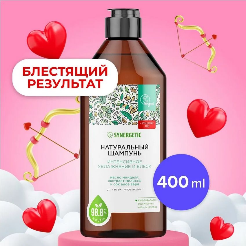 Бессульфатный шампунь "Интенсивное увлажнение и блеск" – эффективное средство для очищения кожи головы и всех типов волос – более чем на 98% состоит из натуральных компонентов.