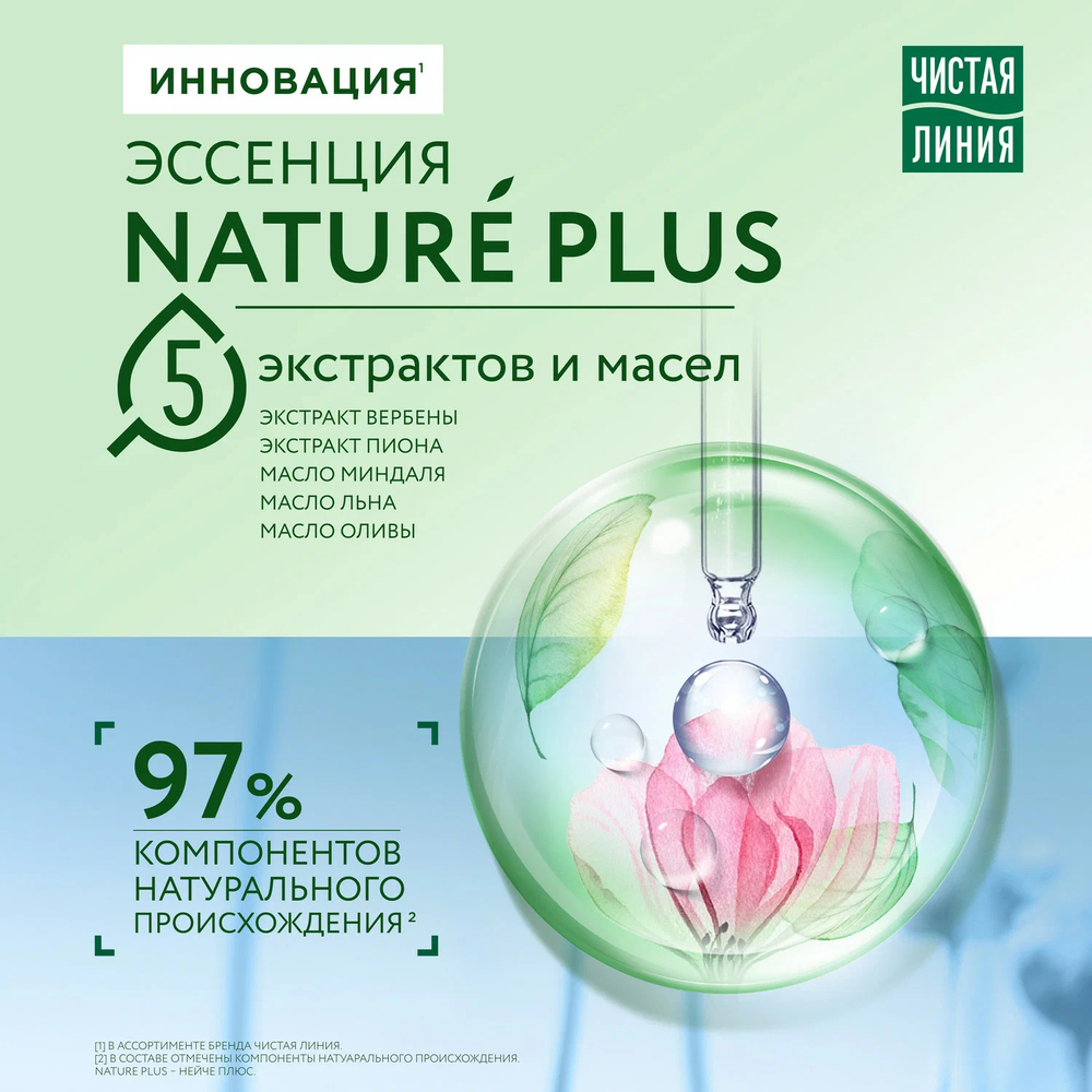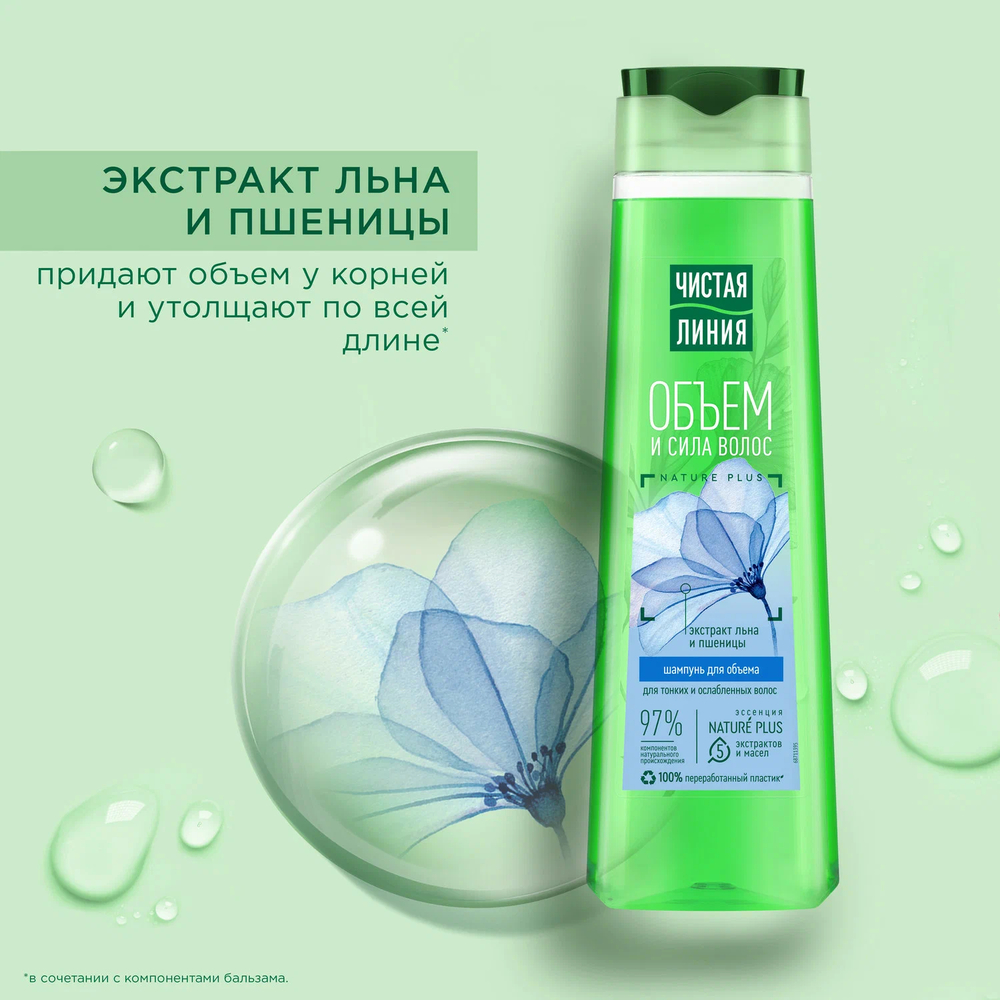 Специально для тонких и ослабленных волос эксперты бренда Чистая Линия создали шампунь Объем и сила. В составе продукта 97% компонентов натурального происхождения2, эссенция Nature Plus из 5-и экстрактов и масел (экстракты вербены, шалфея, шиповника, а также масло миндаля и льна). Активные натуральные компоненты предупреждают выпадение волос, питают и защищают от повреждений.