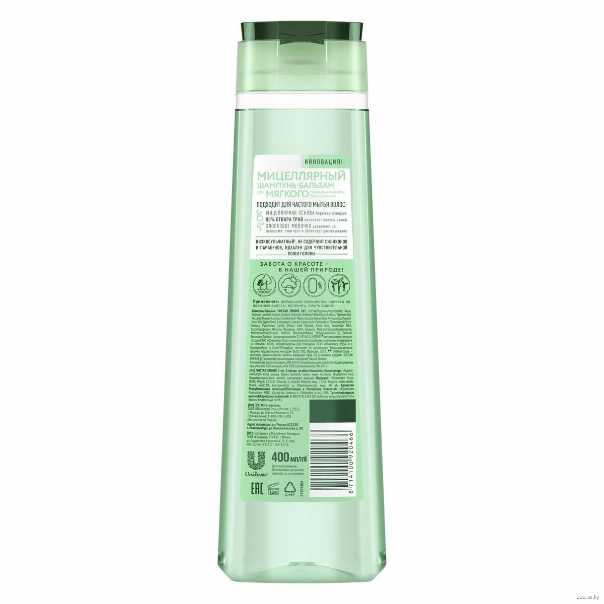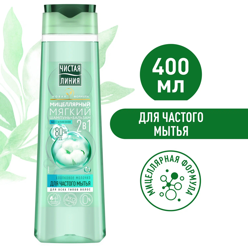 Шампунь-бальзам для волос 2в1 "Хлопковое молочко. Мицеллярный, мягкий" (400 мл)