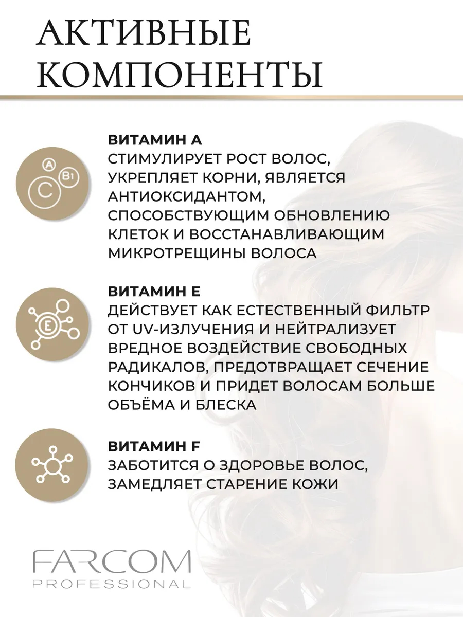 Нейтральный Ph комплекс витаминов A-E-F защищают волосы от свободных радикалов, в результате чего ваши волосы здоровые, блестящие и красивые.