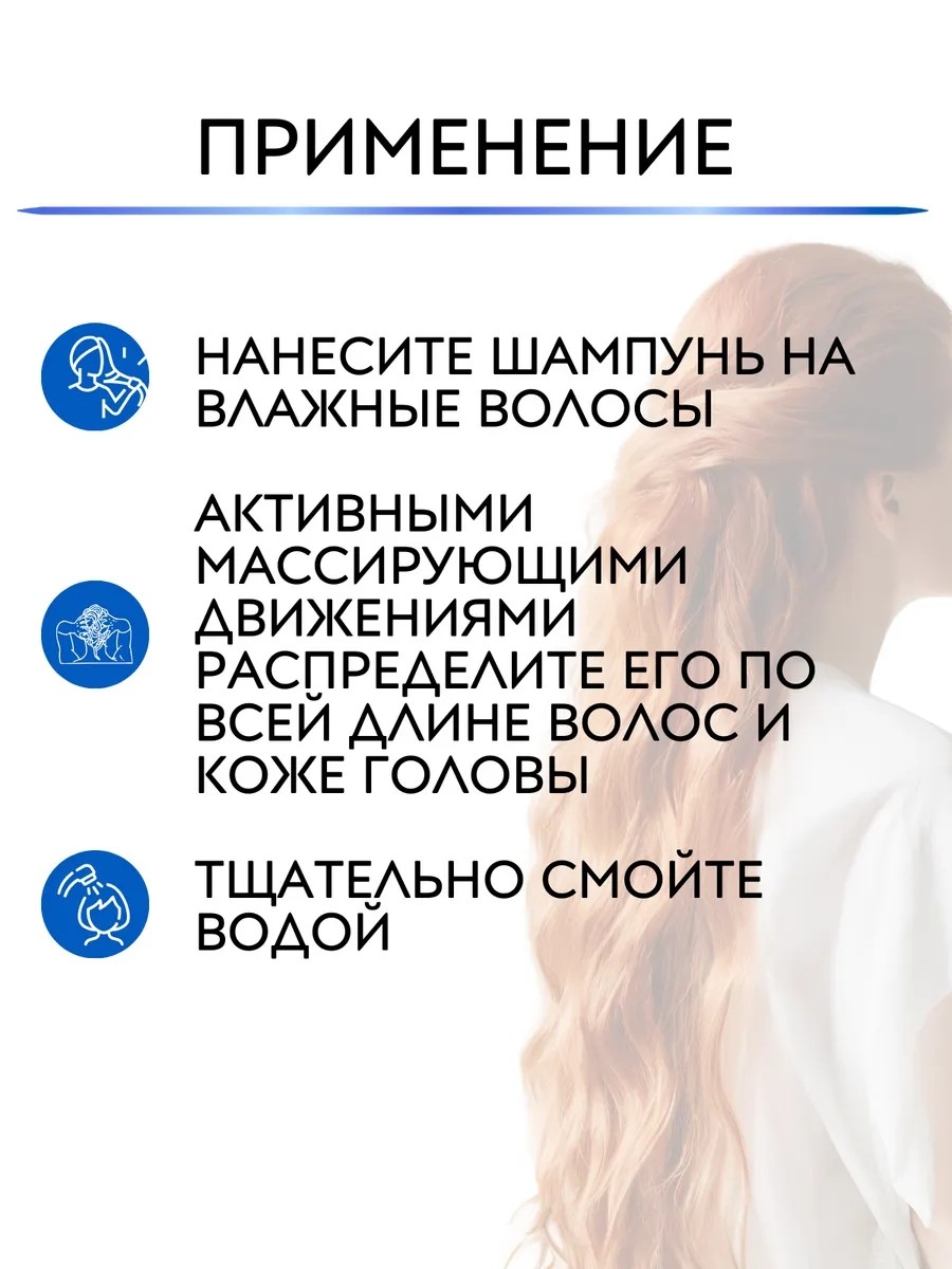 Нанесите необходимое количество шампуня на влажные волосы, равномерно распределите мягкими массирующими движениями, после чего тщательно смойте водой.