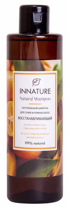 Встряхнуть флакон, нанести шампунь на влажные волосы, помассировать, тщательно смыть. Рекомендуется совместное использование с бальзамом для волос "INNATURE. Восстанавливающий".Состав
