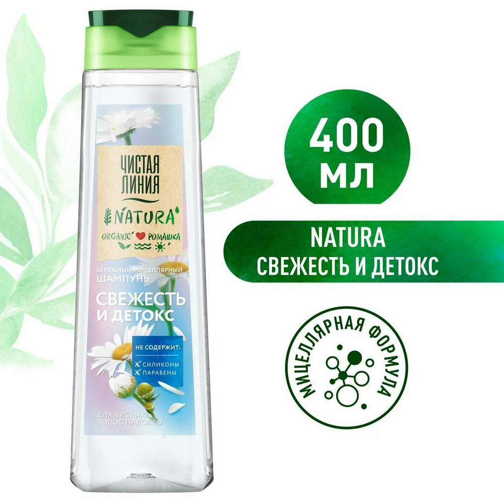 Чистая Линия NATURA не содержит силиконов и парабенов. Мицеллярная формула шампуней бережно очищает кожу головы и волосы от загрязнений, а органические компоненты особо эффективны для восстановления, увлажнения и питания волос.