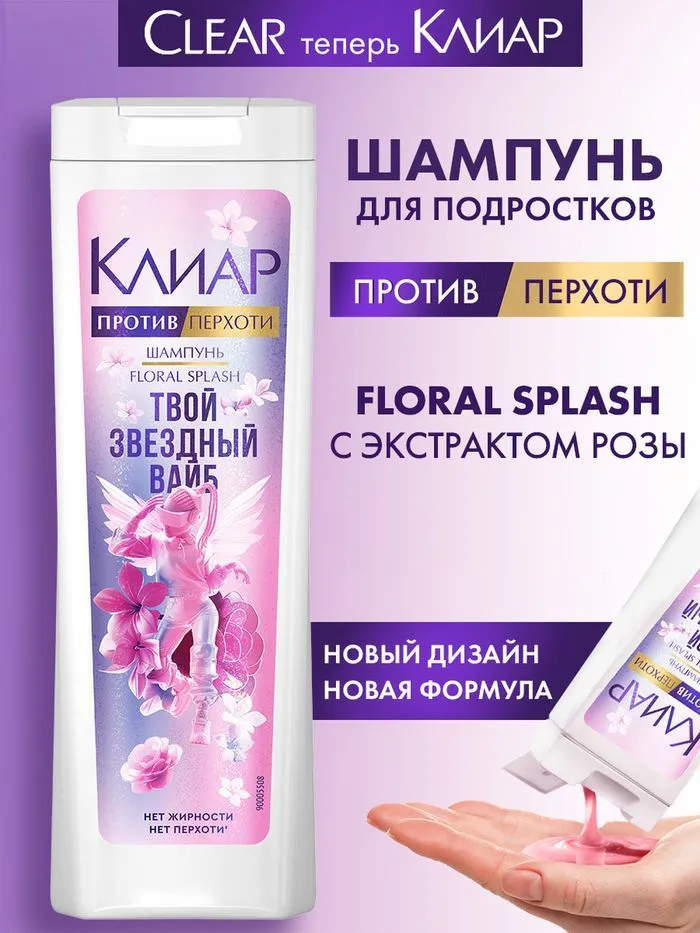 Первый шампунь для подростков против перхоти Clear Floral Splash – это эффективная, но бережная защита от перхоти, жирности и неприятного запаха. Созданный специально для девочек-подростков, шампунь против перхоти Clear Floral Splash позволяет волосам выглядеть идеально – ухожено и красиво.