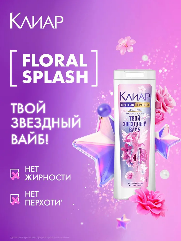 Шампунь женский Clear Floral Splash для подростков против перхоти обладает приятной гелевой текстурой и ярким ароматом, в котором сочетаются романтическая нота нежной розы и яркая и бодрящая цитрусовая нотка лемонграсса.