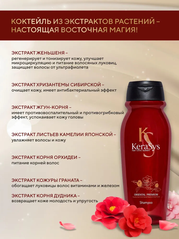 Композиция из шести традиционных восточных трав (женьшень, жгун-корень, орхидея, ангелика, гранат, листья камелии) укрепляет корни волос и предотвращает преждевременное выпадение.