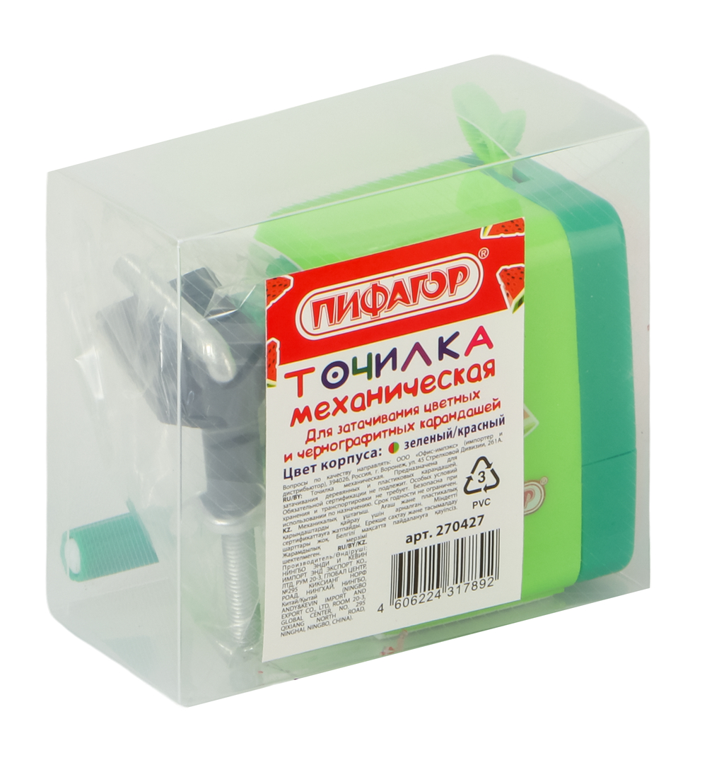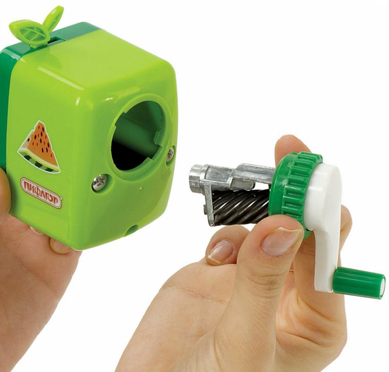 Корпус точилки выполнен из пластика. Вращающийся роликовый нож из высококачественной стали обеспечивает быструю и острую заточку. Точилка имеет одно отверстие и вместительный контейнер для сбора стружки. Диаметр затачиваемого карандаша – 8 мм.