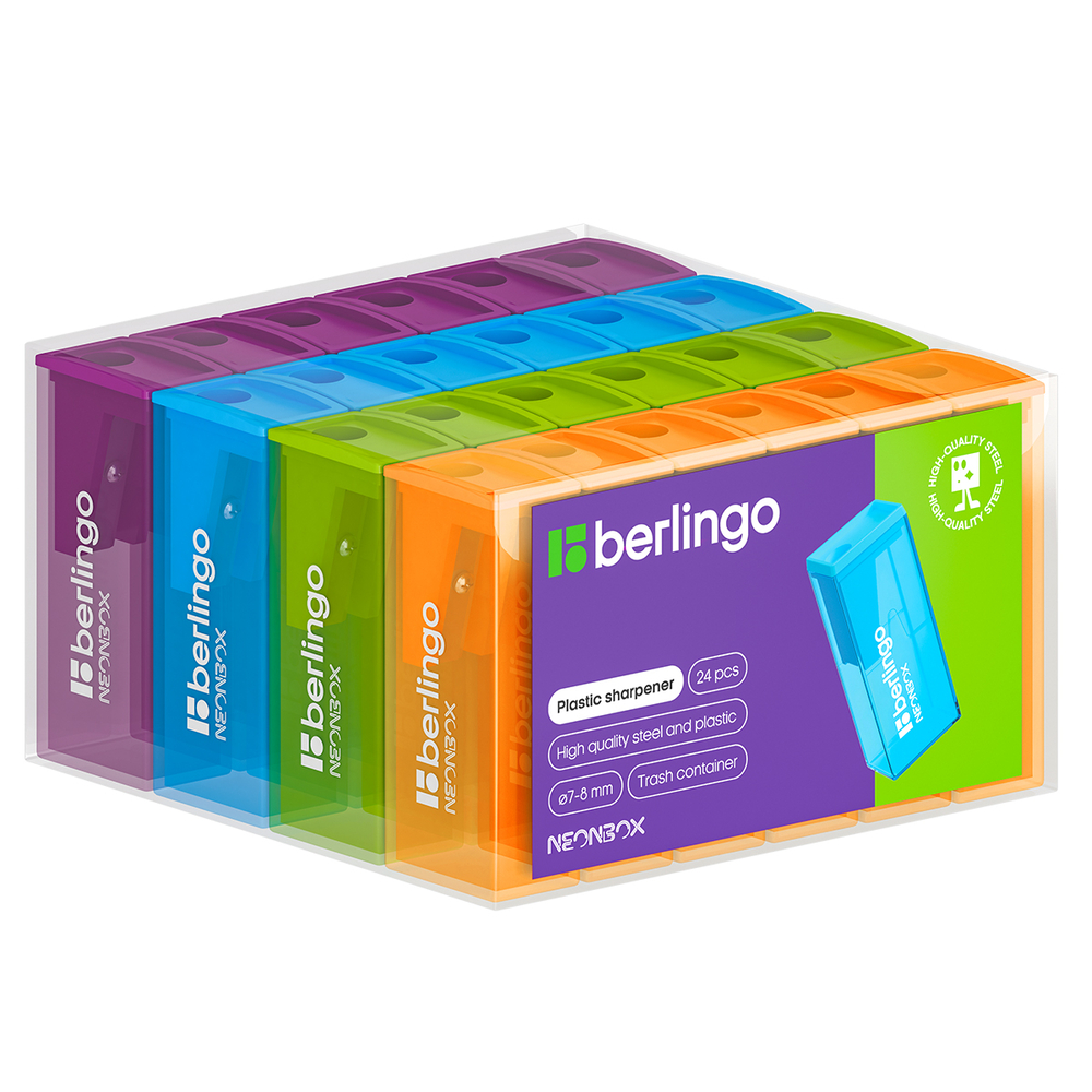 Точилка пластиковая, 1 отверстие. Яркие неоновые цвета крышки и контейнера. Позволяет легко и аккуратно производить заточку карандашей стандартного диаметра до 8 мм.