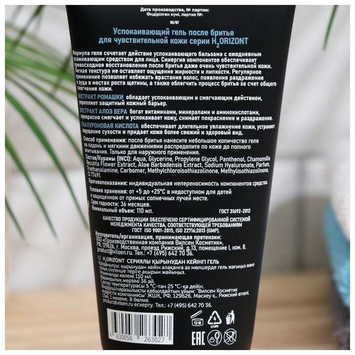 После бритья нанесите небольшое количество геля на ладонь и мягкими движениями распределите по коже до полного впитывания.Состав