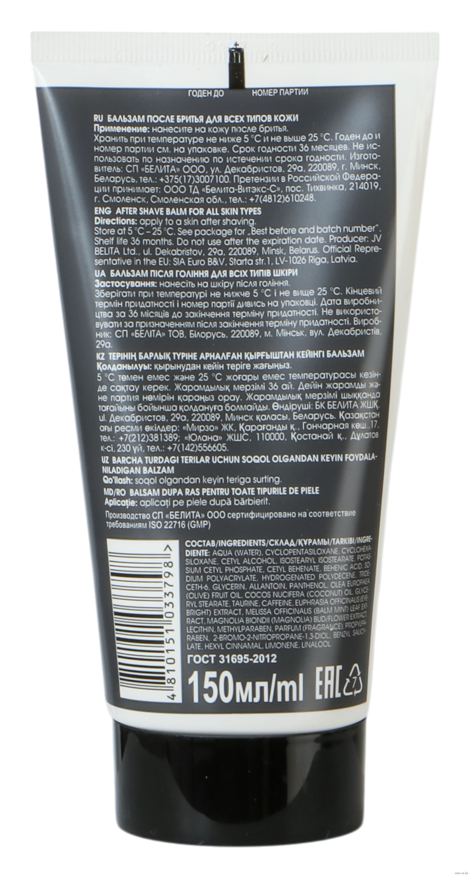 После бритья нанесите небольшое количество бальзама на чистую сухую кожу лица и (или) шеи.Состав