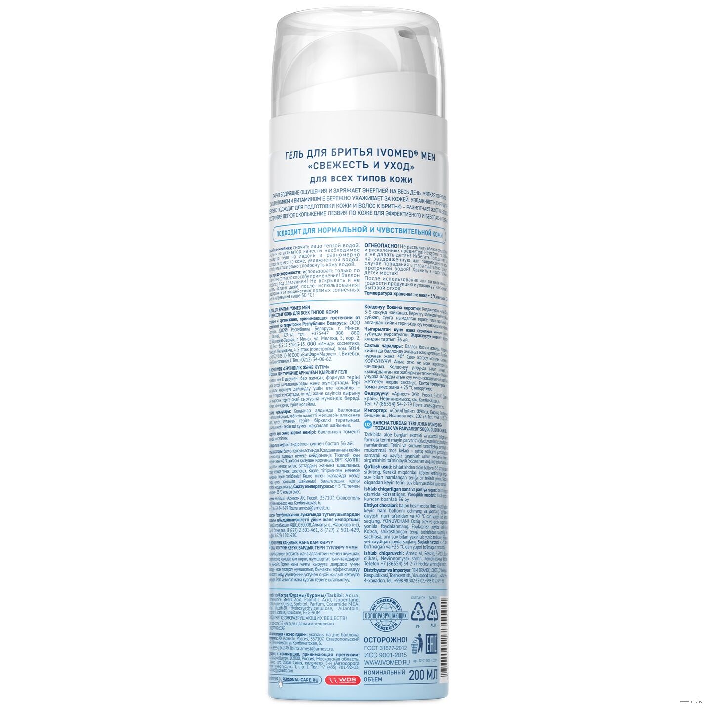 Смочить лицо теплой водой. Нажатием на активатор нанести необходимое количество геля на ладонь и равномерно распределить его по коже, увлажненной водой. После бритья тщательно сполоснуть кожу водой.Состав