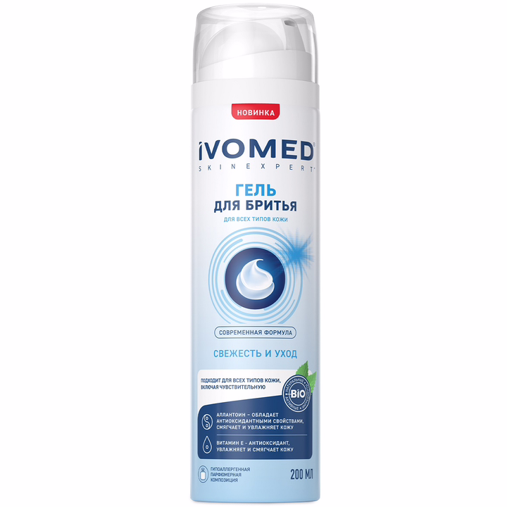 Гель для бритья Ivomed Men "Свежесть и уход" для всех типов кожи.