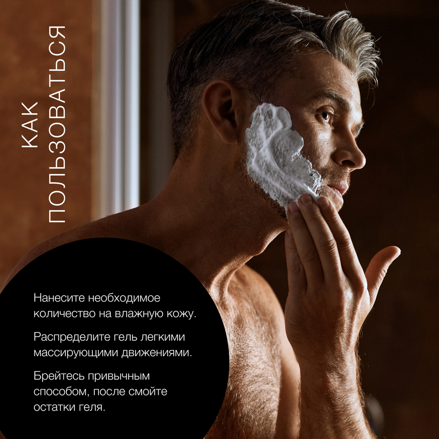 Парфюмированный гель для бритья при соприкосновении с водой трансформируется в роскошную нежную пену.