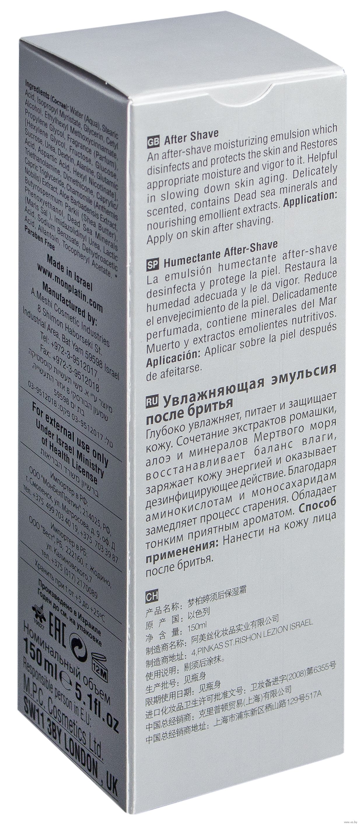 | Изготовитель | A-Meshi Cosmetics Industries, Израиль, 8 Shimon Haborseki St. Industrial Area, Bat Yam, 59598 |