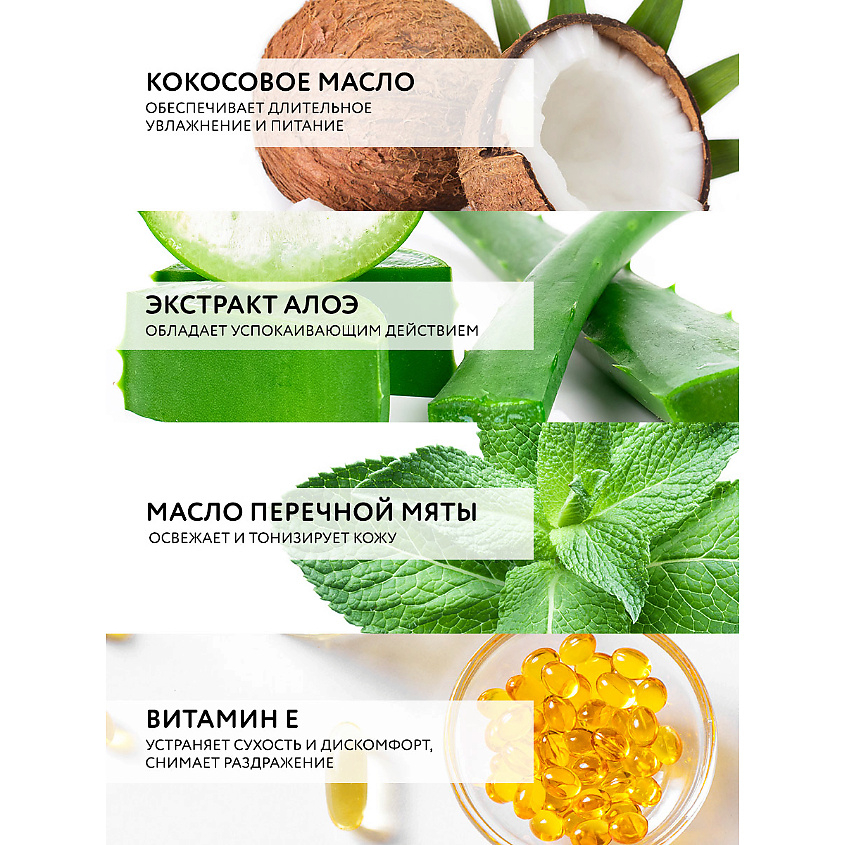 Water (Aqua), Sodium Lauryl Ether Sulfate, Cetyl Alcohol, Glycerin, Glyceryl Stearate, Cocamidopropyl Betaine, Decyl Glucoside, Xantham Gum, Cocos Nucifera (Coconut) Oil, Mentha Piperita (Mint) Oil, BHT, Phenoxyethanol, Ethylhexylglycerin, Parfum, Maris Sal (Dead Sea), Tocopheryl Acetate (Vitamin E), Aloe Barbadensis Leaf Extract, CI 4209, Citral, Geraniol, Linalool, Citronellol, Hexyl Cinnamal, Limonene.Мы используем файлы cookie для обеспечения удобства работы с сайтом и его контакта с пользователем.