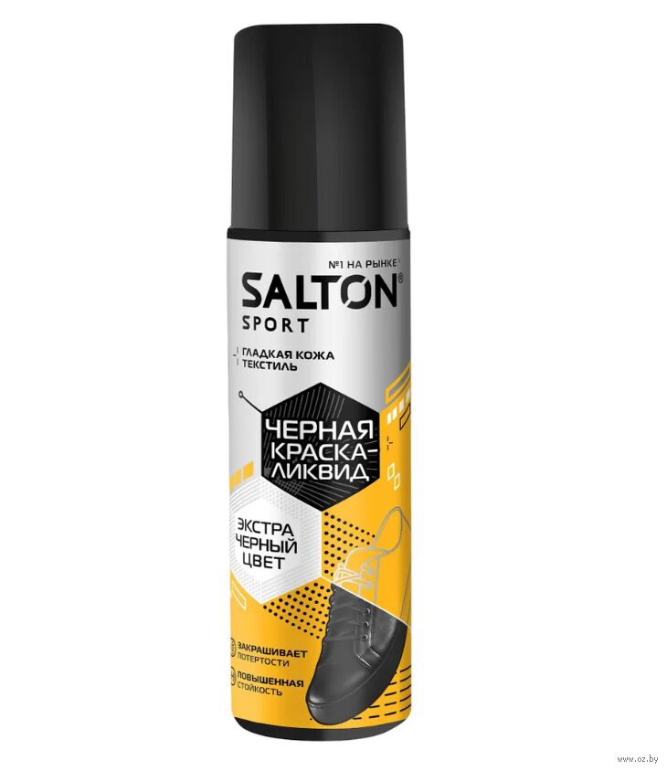 Salton Sport краска экстрачерного цвета позволяет сохранить свежий вид черной обуви и продлить срок ее службы. Это идеальное средство для черных кроссовок ,кожаной спортивной обуви и другой обуви из текстиля. Также подойдет для обуви из гладкой кожи и для черной подошвы и рантов. Краску-ликвид можно использовать и для сумок, ремней, перчаток и других изделий из кожи или текстиля. Не подходит для замшевой обуви.