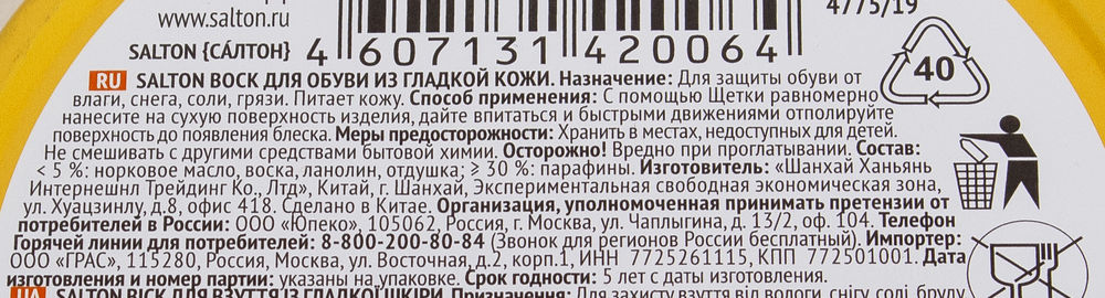 | Импортер | ООО «Приносим радость», 220073, г. Минск, ул. Скрыганова, д. 14, каб. 36. |
