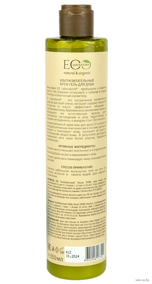 Ультрапитательный крем-гель для душа EO Laboratorie, благодаря активным компонентам в составе, деликатно очищает и тонизирует кожу, насыщает ее влагой и питательными веществами. В результате регулярного применения геля кожа более упругая, бархатистая, увлажненная.