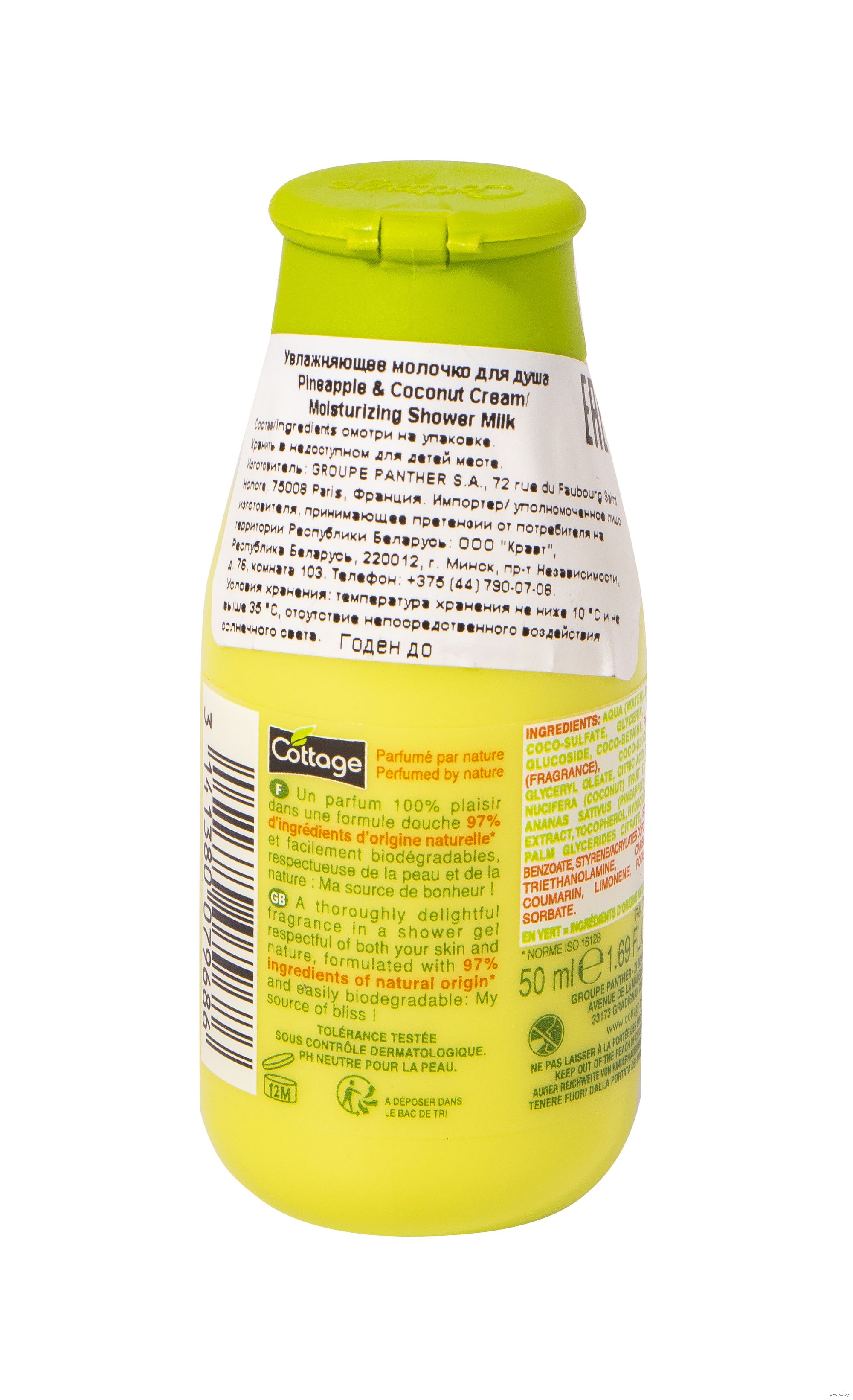 Подарите коже максимум нежности и заботы с минимумом ингредиентов. Молочко для душа "Cottage" на 97% состоит из натуральных компонентов, которые бережно увлажняют и смягчают кожу, восстанавливая ее упругость, мягкость, шелковистость и здоровое сияние. При этом формула средства безопасна для окружающей среды и быстро разлагается.