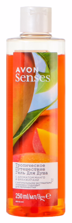 Почувствуй тепло тропиков. Гель перенесет тебя на солнечное экзотическое побережье с композицией из сочного манго и франжипани.