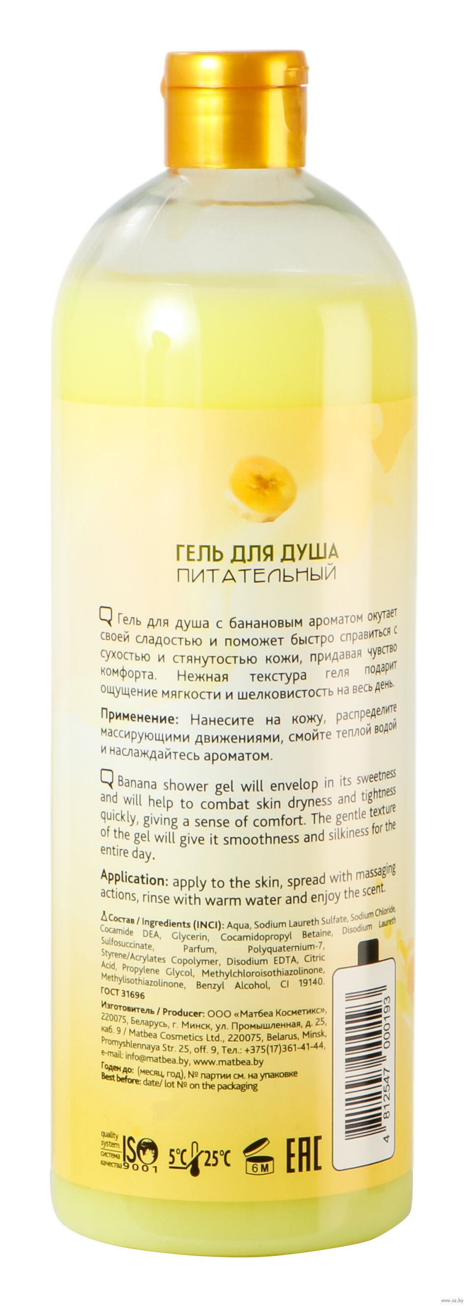 Гель для душа с банановым ароматом окутает своей сладостью и поможет быстро справиться с сухостью и стянутостью, придавая чувство комфорта. Витамины и макроэлементы, которые содержаться в геле, насыщают кожу питательными веществами, дарят ей мягкость и шелковистость на весь день.