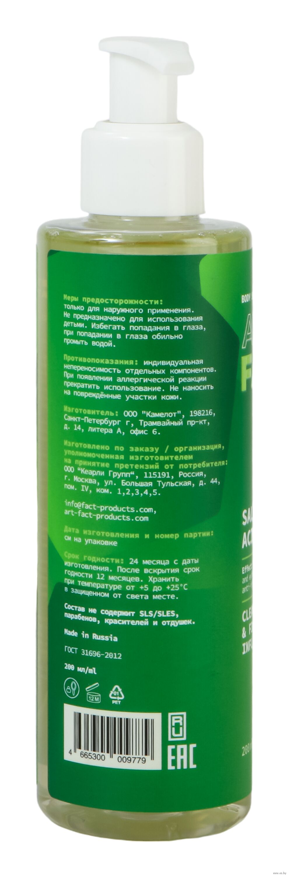 Небольшое количество геля вспеньте и нанесите на влажную кожу на проблемных участках тела. Очистите кожу и смойте водой комфортной, не горячей температуры. Подходит для ежедневного применения на проблемных участках. После нанесите антисептическое средство. Не использовать для интимной гигиены.Состав