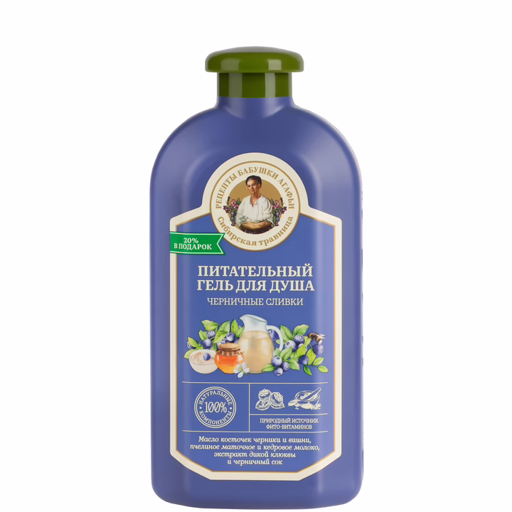 Aqua with infusions of Vaccinium Macrocarpon Fruit Extract (экстракт дикой клюквы), Vaccinium Myrtillus Fruit Juice (сок черники); Royal Jelly (пчелиное маточное молочко), Pinus Sibirica Needle Extract, Pinus Sibirica Seed Oil, Pinus Sibirica Seed Oil Polygliceryl-6 Esters, Xanthan Gum (кедровое молоко), Sodium Laureth Sulfate, Cocamidopropyl Betaine, Coco-Glucoside, Vaccinium Myrtillus Seed Oil (масло косточек черники), Prunus Cerasus Seed Oil (масло косточек вишни), Styrene/Acrylates Copolymer, Benzyl Alcohol, Sodium Benzoate, Potassium Sorbate, Sodium Chloride, Citric Acid, Parfum, CI 28440.