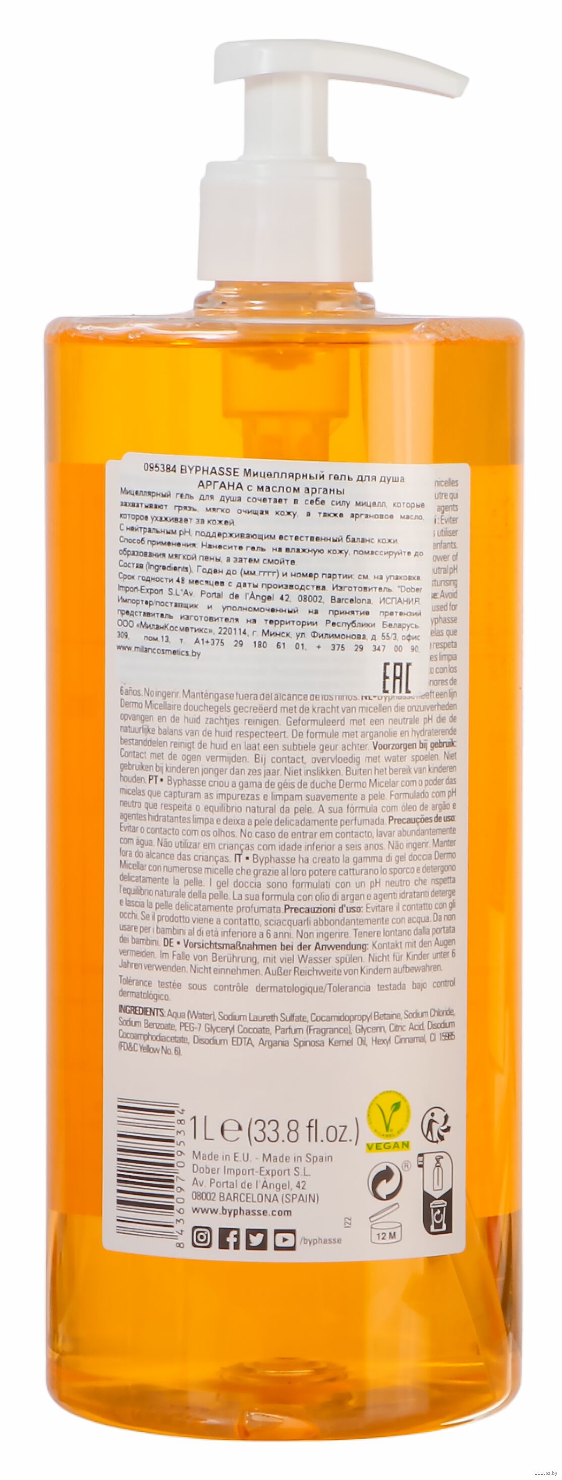Мицеллярный гель для душа Byphasse Argan изготовлен на основе мягкой формулы без содержания агрессивных компонентов, бережно устраняет загрязнения, глубоко очищает кожу тела, поддерживает оптимальный pH-баланс эпидермиса. Хорошо пенится, экономно расходуется, обладает нежным ароматом.
