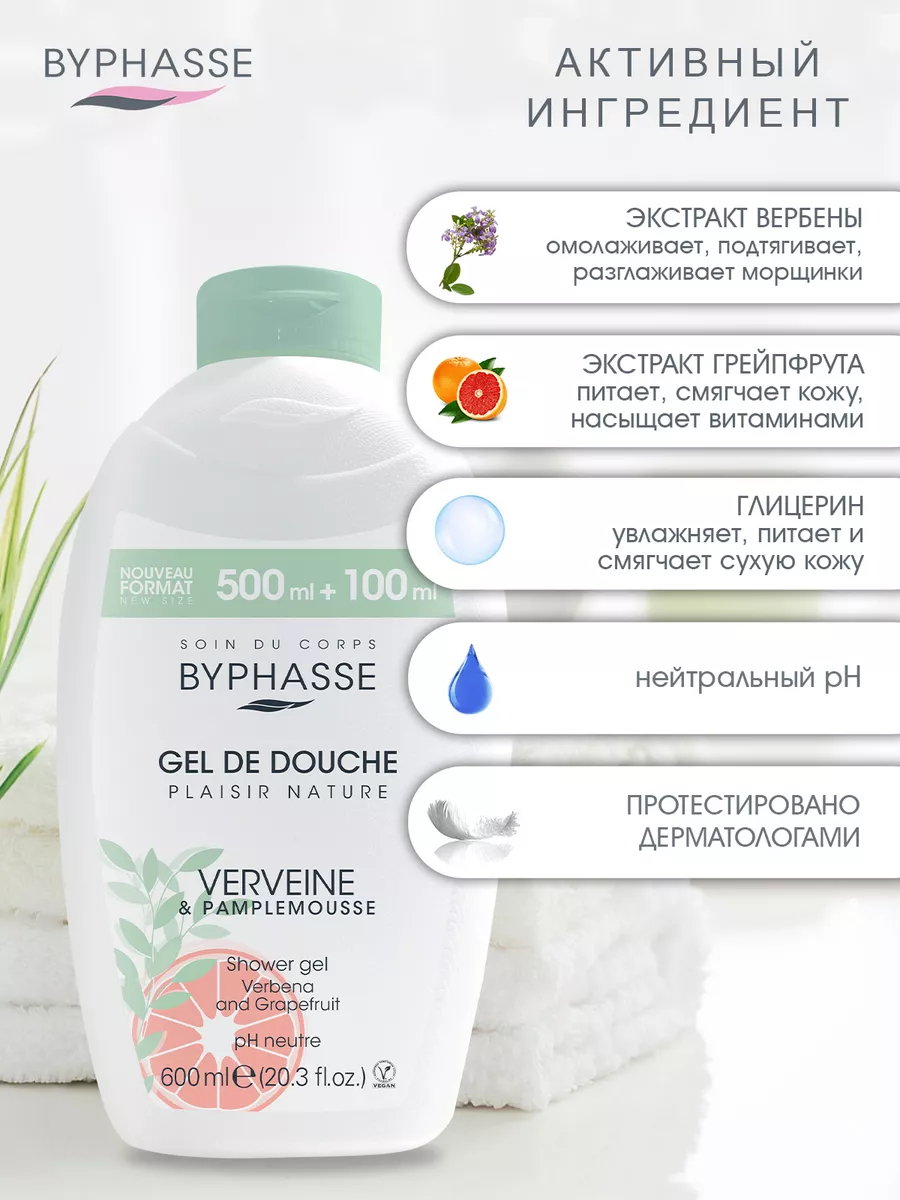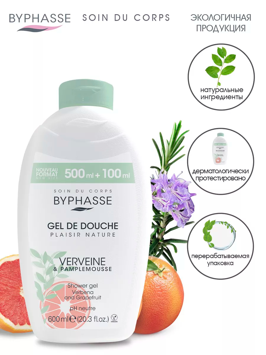 Гель для душа с экстрактами вербены и грейпфрута вдохновлен свежестью и лёгкостью природы. Гель обладает нейтральным рН, соблюдающий естественный баланс кожи.