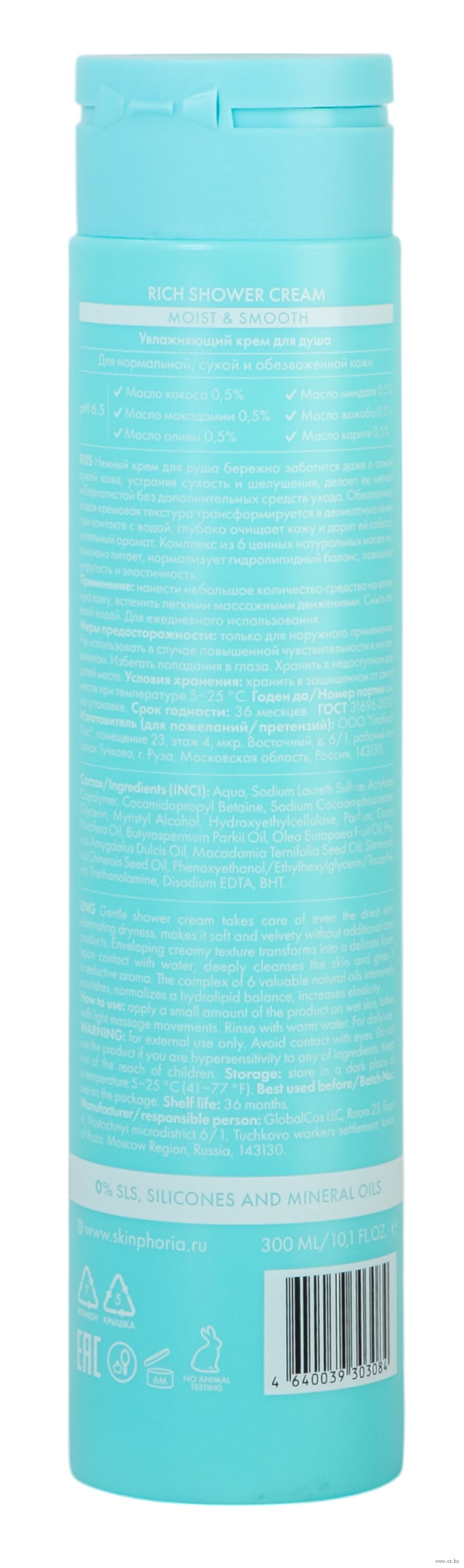 Нежный крем для душа Rich Shower Cream бережно заботится даже о самой сухой коже, устраняя сухость и шелушения, делает ее мягкой и бархатистой без дополнительных средств ухода.