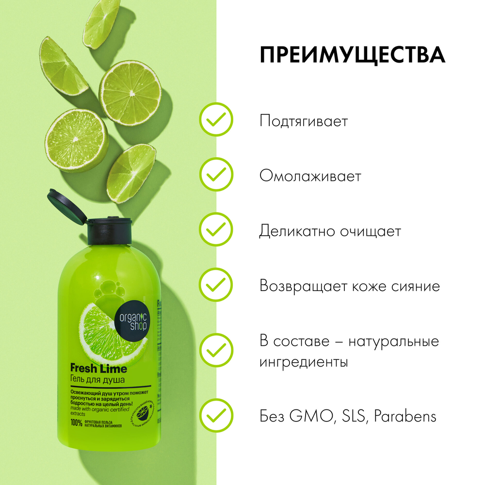Гель для душа Organic Shop "Fresh Lime" содержит органические фруктовые экстракты, которые нежно очищают и ухаживают за вашим телом. Соблазнительный цитрусовый аромат придаст энергию и поднимет настроение на весь день.