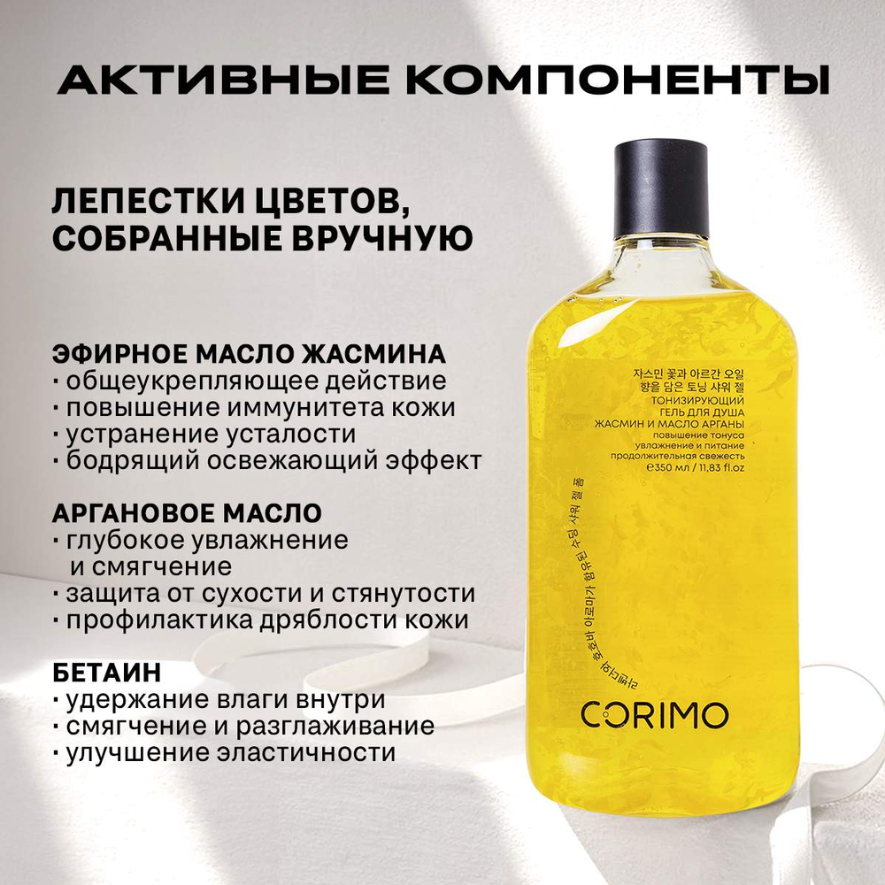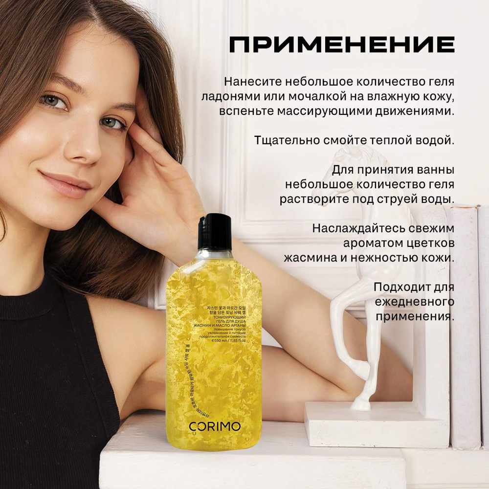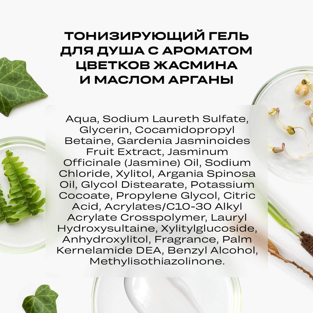 Тонизирующий гель для душа с ароматом цветков жасмина и маслом арганы деликатно очищает и ухаживает за кожей.