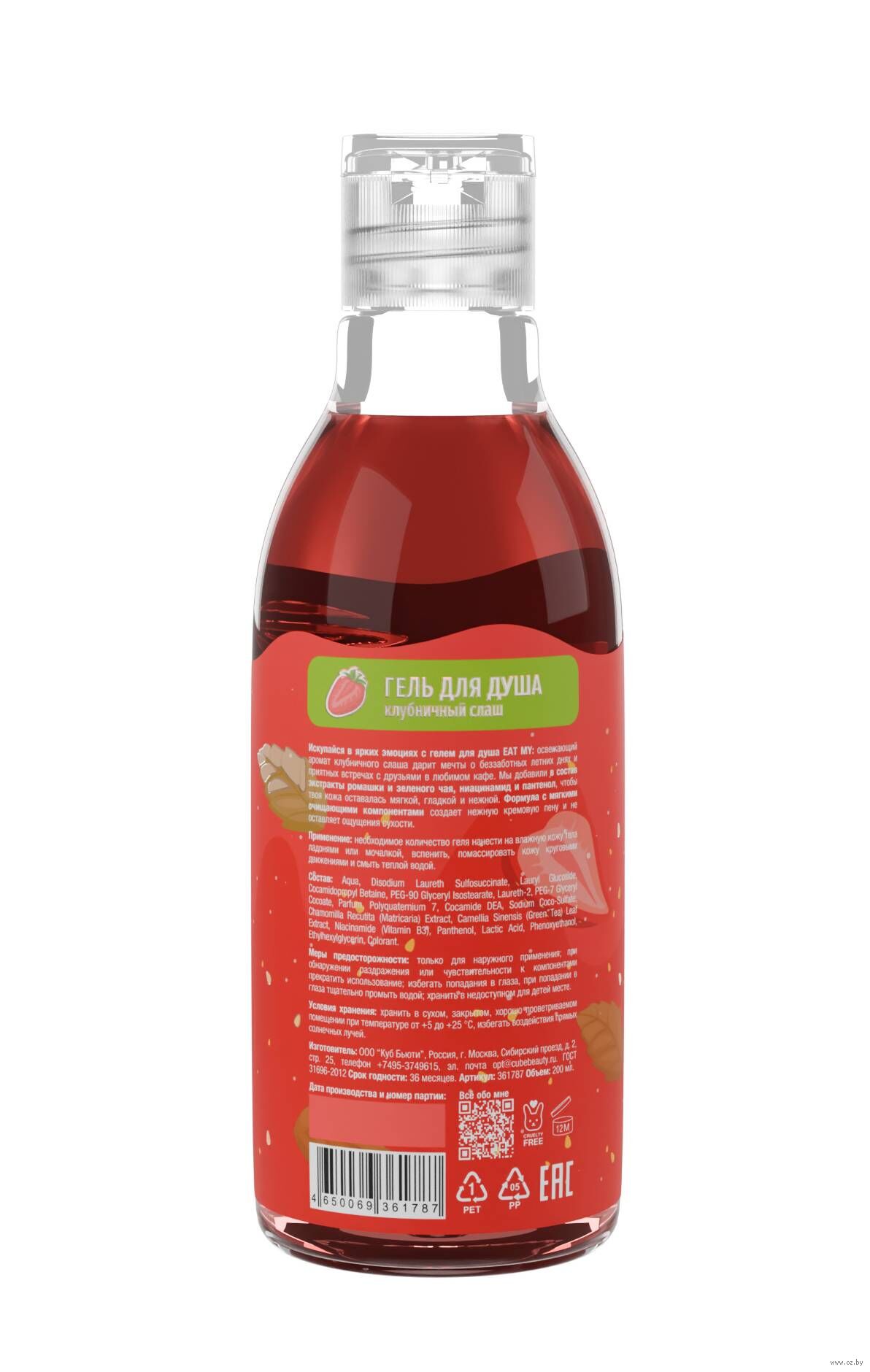Искупайся в ярких эмоциях с гелем для душа EAT MY: освежающий аромат клубничного слаша дарит мечты о беззаботных летних днях и приятных встречах с друзьями в любимом кафе. Мы добавили в состав восстанавливающие и ухаживающие ингредиенты, чтобы твоя кожа оставалась мягкой, гладкой и нежной. Формула с мягкими очищающими компонентами создает нежную кремовую пену, деликатно очищает и не оставляет ощущения сухости.