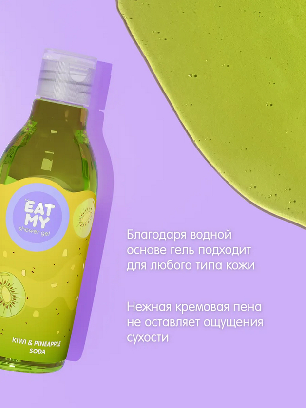 Искупайся в ярких эмоциях с гелем для душа EAT MY: солнечный аромат содовой с киви и ананасом вызывает мысли о летних фестивалях и танцах босиком на теплом песке. Мы добавили в состав восстанавливающие и ухаживающие ингредиенты, чтобы твоя кожа оставалась мягкой, гладкой и нежной. Формула с мягкими очищающими компонентами создает нежную кремовую пену, деликатно очищает и не оставляет ощущения сухости.