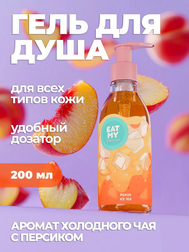 Искупайся в ярких эмоциях с гелем для душа EAT MY: знакомый аромат холодного чая с персиком погружает в воспоминания о весёлом пикнике с бадминтоном и фрисби на солнечной лужайке. Мы добавили в состав восстанавливающие и ухаживающие ингредиенты, чтобы твоя кожа оставалась мягкой, гладкой и нежной. Формула с мягкими очищающими компонентами создает нежную кремовую пену, деликатно очищает и не оставляет ощущения сухости.