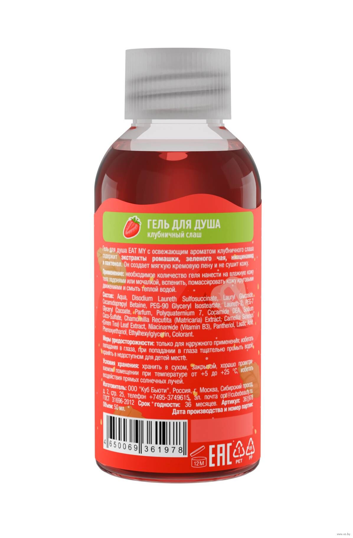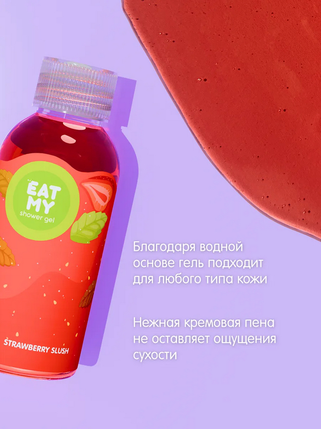 Искупайся в ярких эмоциях с гелем для душа EAT MY: освежающий аромат клубничного слаша дарит мечты о беззаботных летних днях и приятных встречах с друзьями в любимом кафе. Мы добавили в состав восстанавливающие и ухаживающие ингредиенты, чтобы твоя кожа оставалась мягкой, гладкой и нежной. Формула с мягкими очищающими компонентами создает нежную кремовую пену, деликатно очищает и не оставляет ощущения сухости.