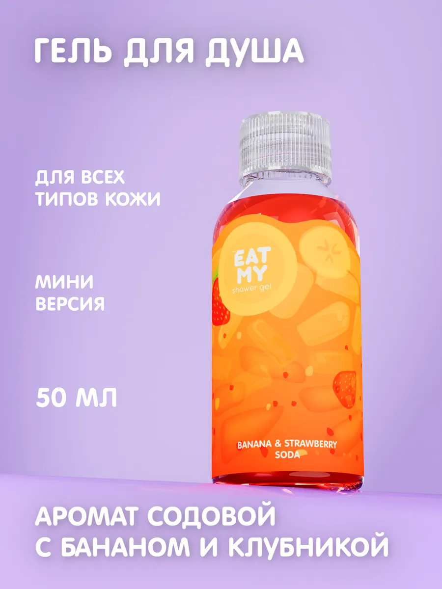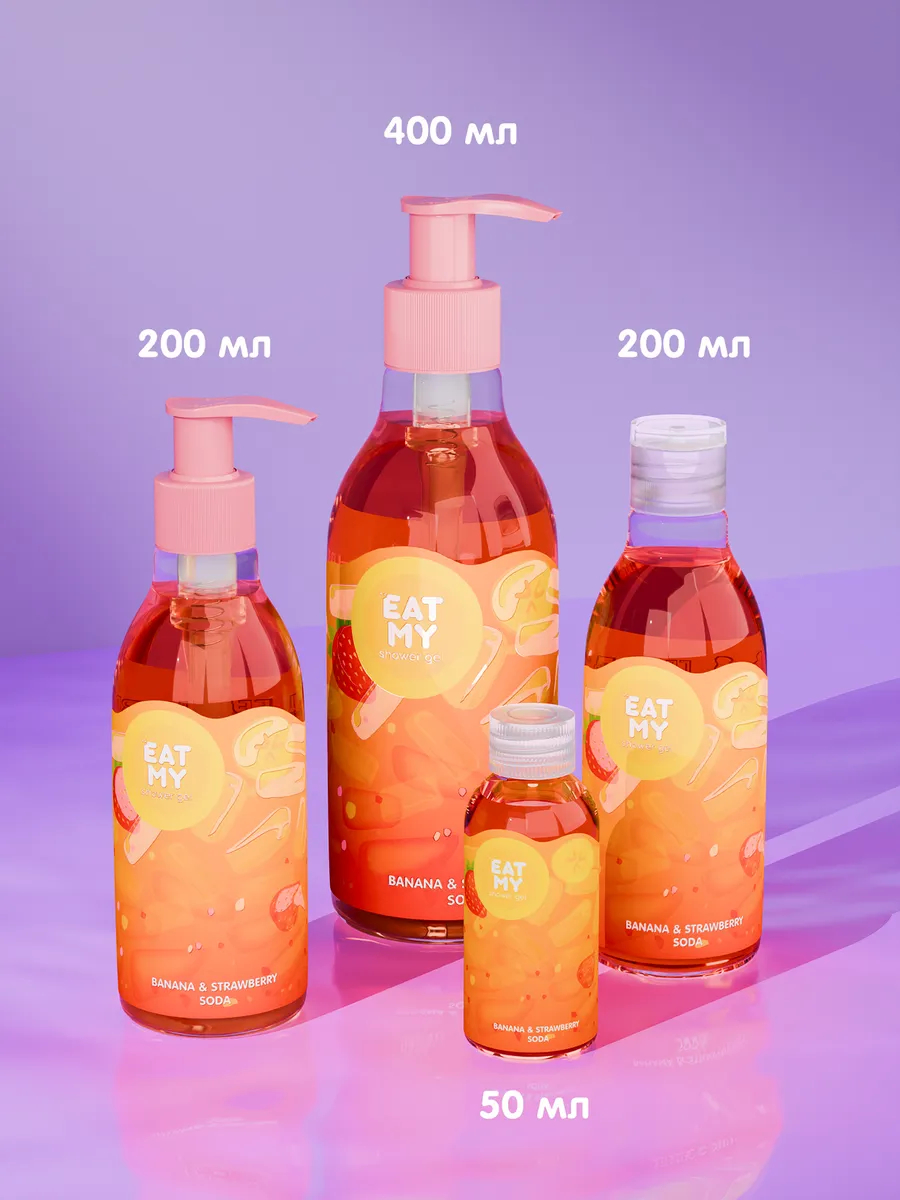Утоли жажду новых впечатлений с гелем для душа EAT MY: мягкая обволакивающая текстура и яркий аромат искристой содовой с бананом и клубникой заставят тебя улыбаться от удовольствия.