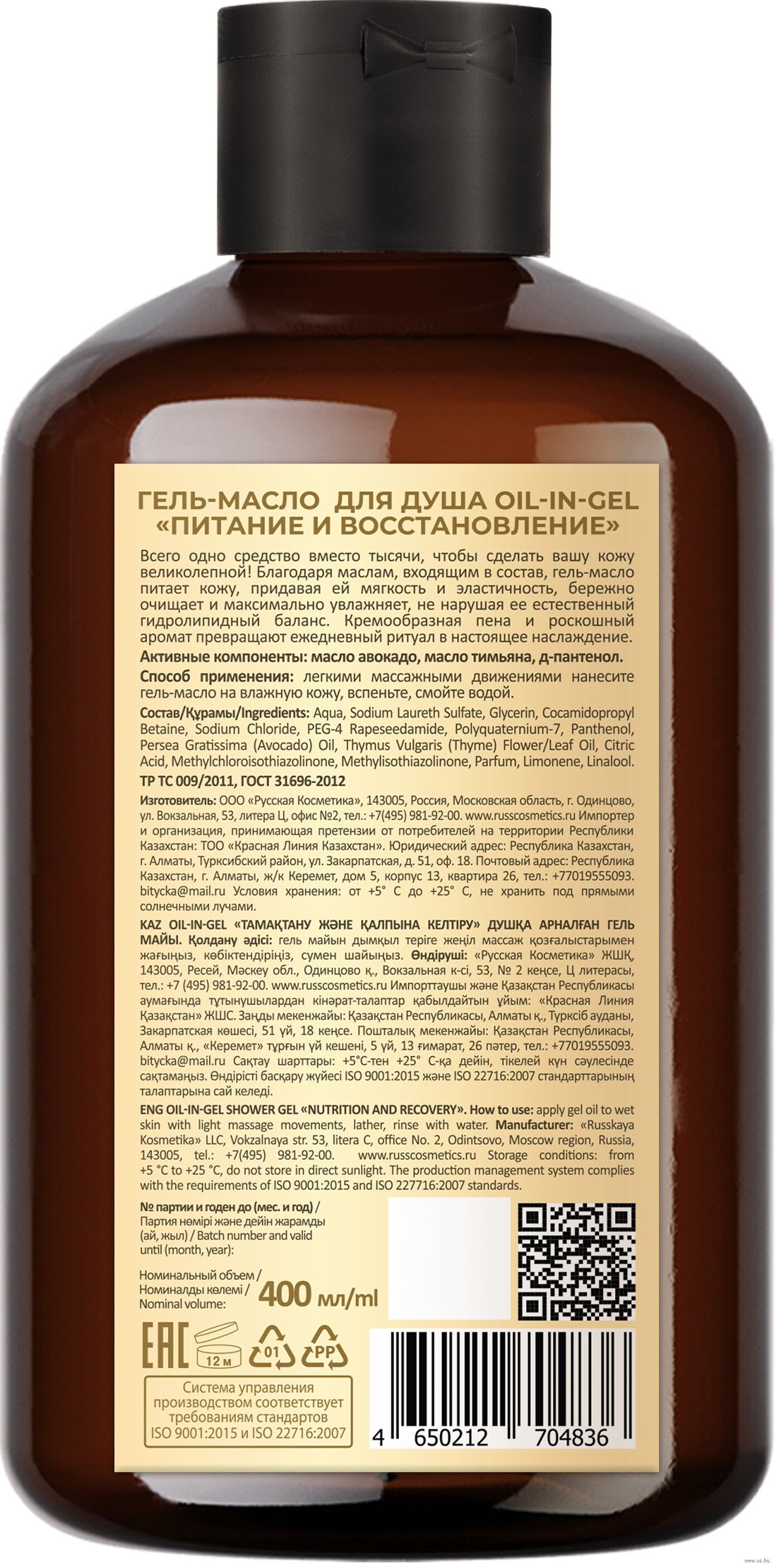 Гель-масло для душа "Питание и восстановление" (400 мл)