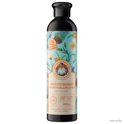 Питательный крем-гель для душа "На 7 маслах" Питательный крем-гель для душа полезный уход дарит, нежно очищает и насыщает кожу питательными веществами, дарит длительное ощущение нежности и комфорта. "Добавь в тёплую воду овсяное молочко и несколько капель кедрового маслица, водица та полезной для купания станет, кожу твою омолодит и краше сделает".