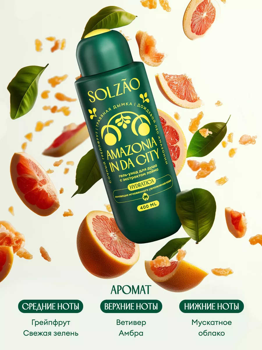 Наслаждайтесь приятным ароматом лайма и ощущением свежести каждый раз, когда принимаете душ с гелем Solzao Amazonia.