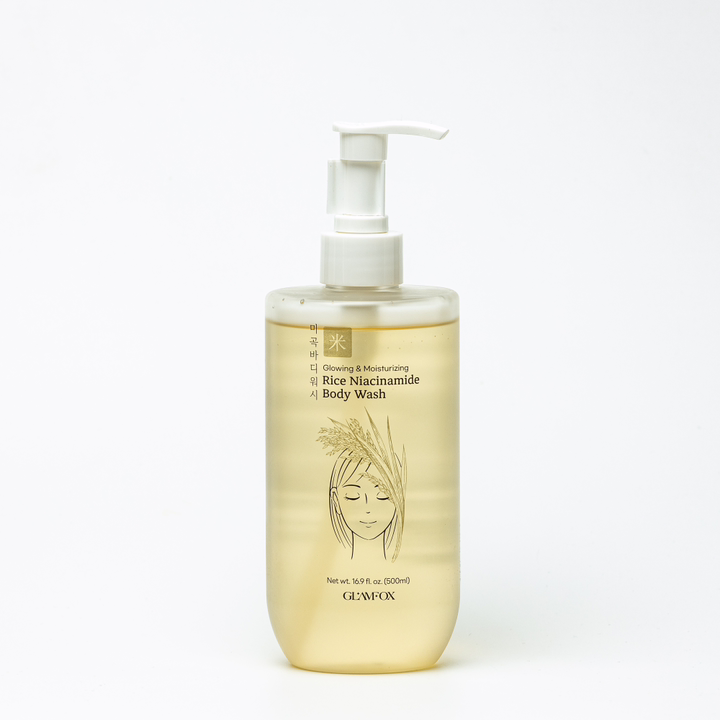 GLAMFOX Rice Niacinamide Body Wash гель для душа с экстрактом риса и ниацинамидом для бережного очищения и увлажнения кожи. Мягкая формула эффективно удаляет загрязнения и излишки кожного сала, не пересушивая кожу. Экстракт риса смягчает и успокаивает, а ниацинамид улучшает текстуру кожи и сужает поры. Гель оставляет кожу чистой, мягкой и свежей, без чувства стянутости. Подходит для ежедневного использования, особенно для сухой и склонной к несовершенствам кожи.