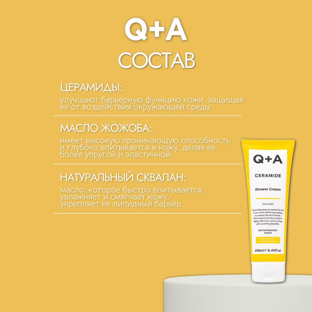 Церамиды играют важную роль в здоровье и красоте кожи. Крем для душа с церамидами Q+A Ceramide деликатно очищает кожу, не нарушая защитный барьер, что особенно важно для чувствительной кожи. Обогащенный скваланом, маслом жожоба и церамидами, он обеспечивает интенсивное питание и успокаивает кожу.