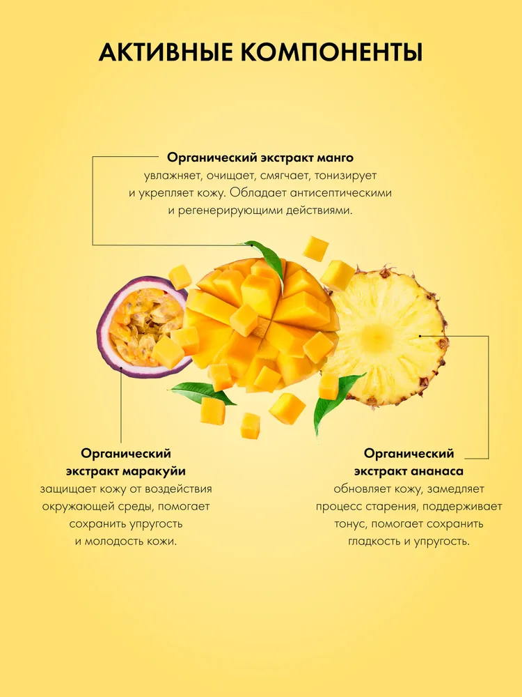 Ароматный гель для душа нежно очищает кожу, не пересушивая её. Обогащенная органическими фруктовыми экстрактами формула насыщена витаминами и питательными маслами. В составе геля нет ни сульфатов, ни парабенов – поэтому он не сушит кожу.