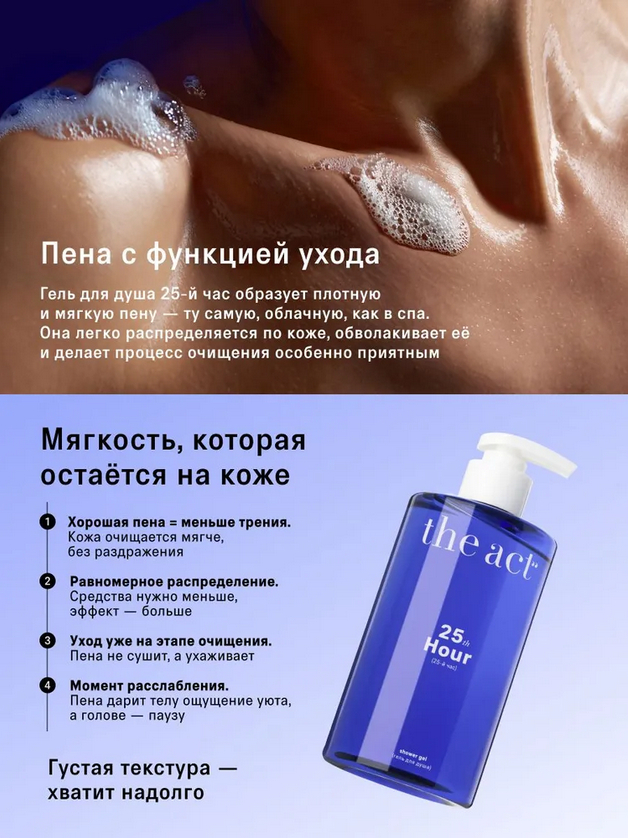 Парфюмированный гель для душа с ценными ухаживающими компонентами мягко очищает, глубоко увлажняет и смягчает кожу, поддерживая её естественный баланс и обеспечивая длительное ощущение комфорта. Аромат, созданный парфюмерами, наполняет спокойствием и умиротворением, превращая повседневный уход за собой в SPA-ритуал расслабления и наслаждения