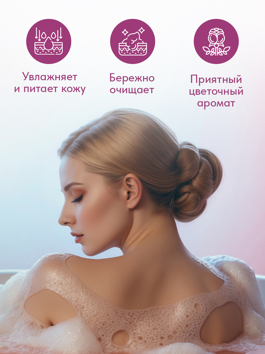 Крем-гель для душа нежно очищает и питает, оставляет на коже приятный цветочный аромат.