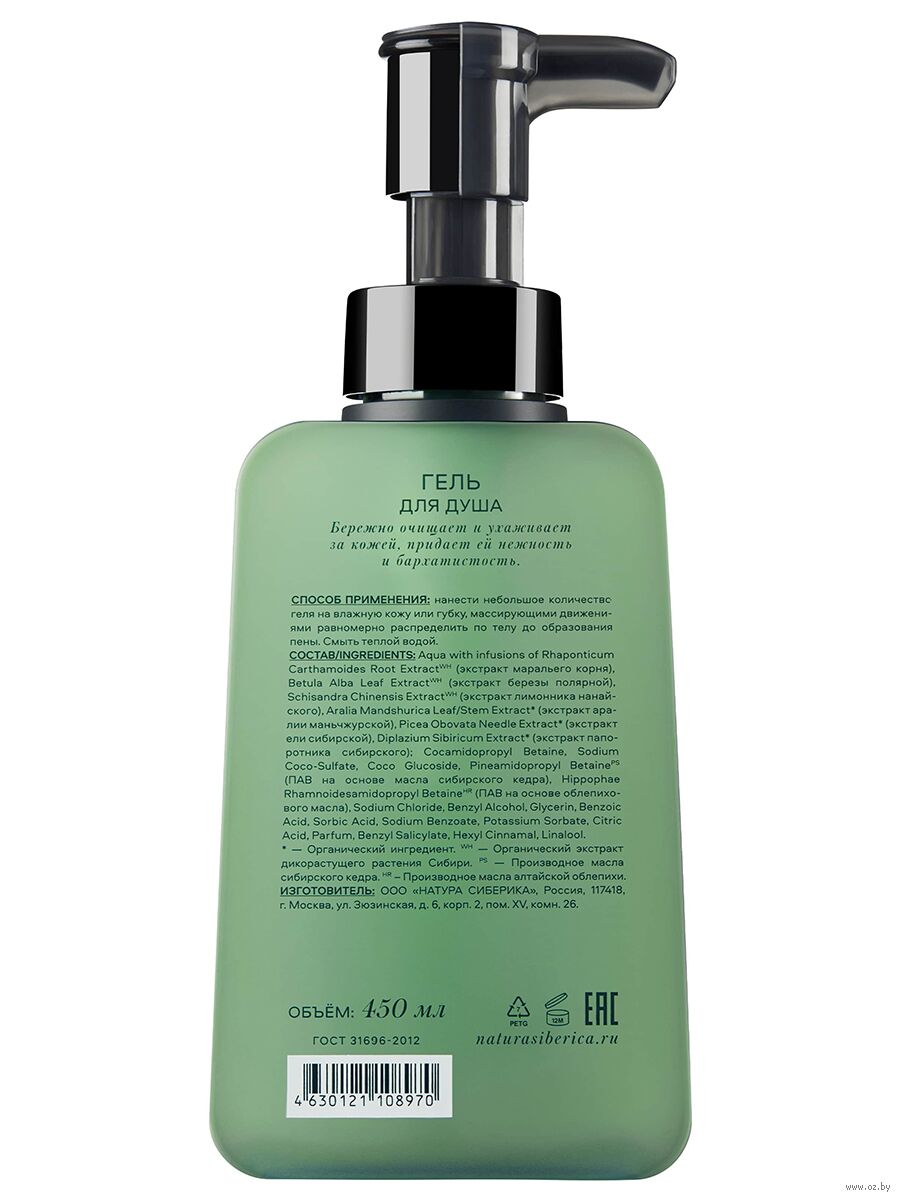 Aqua with infusions of Abies Sachalinensis Needle ExtractWH (экстракт пихты сахалинской), Poa Аrctica Flower Leaf Stem ExtractWH (экстракт мятлика арктического), Hesperis Sibirica Flower Leaf Stem ExtractWH (экстракт вечерницы сибирской), Rhaponticum Carthamoides Root ExtractWH (экстракт маральего корня), Betula Alba Leaf ExtractWH (экстракт березы полярной), Schisandra Chinensis ExtractWH (экстракт лимонника нанайского), Salvia Officinalis Leaf Extract* (экстракт шалфея лекарственного), Silybum Marianum Extract* (экстракт расторопши пятнистой), Aralia Mandshurica Leaf Stem Extract* (экстракт аралии маньчжурской), Picea Obovata Needle Extract* (экстракт ели сибирской), Diplazium Sibiricum Extract* (экстракт папоротника сибирского); Sodium Coco-Sulfate, Cocamidopropyl Betaine, Lauryl Glucoside, Glycerin, Pineamidopropyl BetainePS (ПАВ на основе масла сибирского кедра), Hippophae Rhamnoidesamidopropyl BetaineHR (ПАВ на основе облепихового масла), Sodium Chloride, Benzyl Alcohol, Sodium Benzoate, Potassium Sorbate, Parfum, Benzyl Salicylate, Coumarin, Hydroxycitronellal, Linalool, Citric Acid. (*) - органические ингредиенты (WH) – органические экстракты дикорастущих растений Сибири (PS) - производное масла сибирского кедра (HR) – производное масла алтайской облепихиМы используем файлы cookie для обеспечения удобства работы с сайтом и его контакта с пользователем.