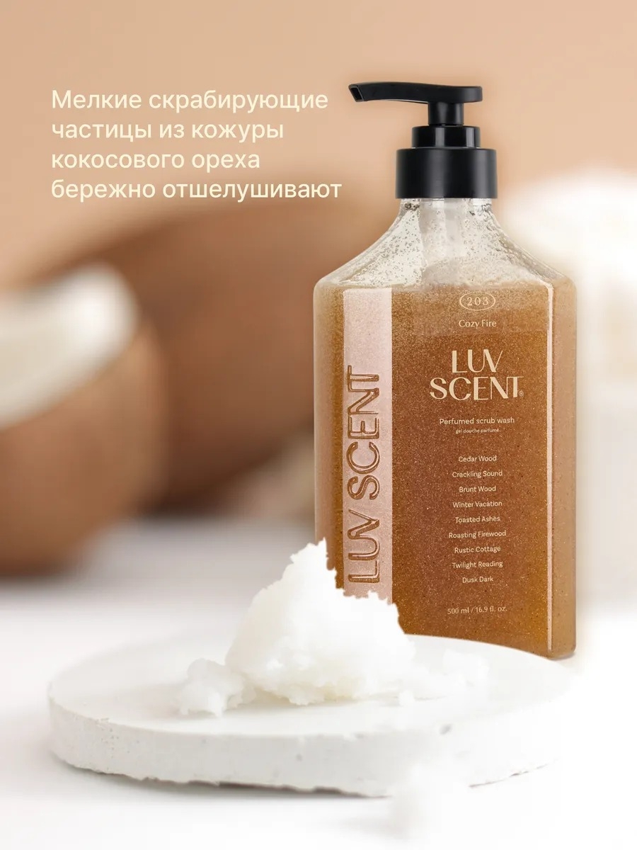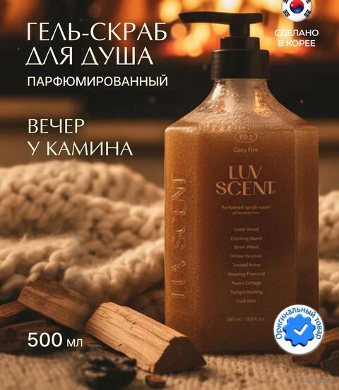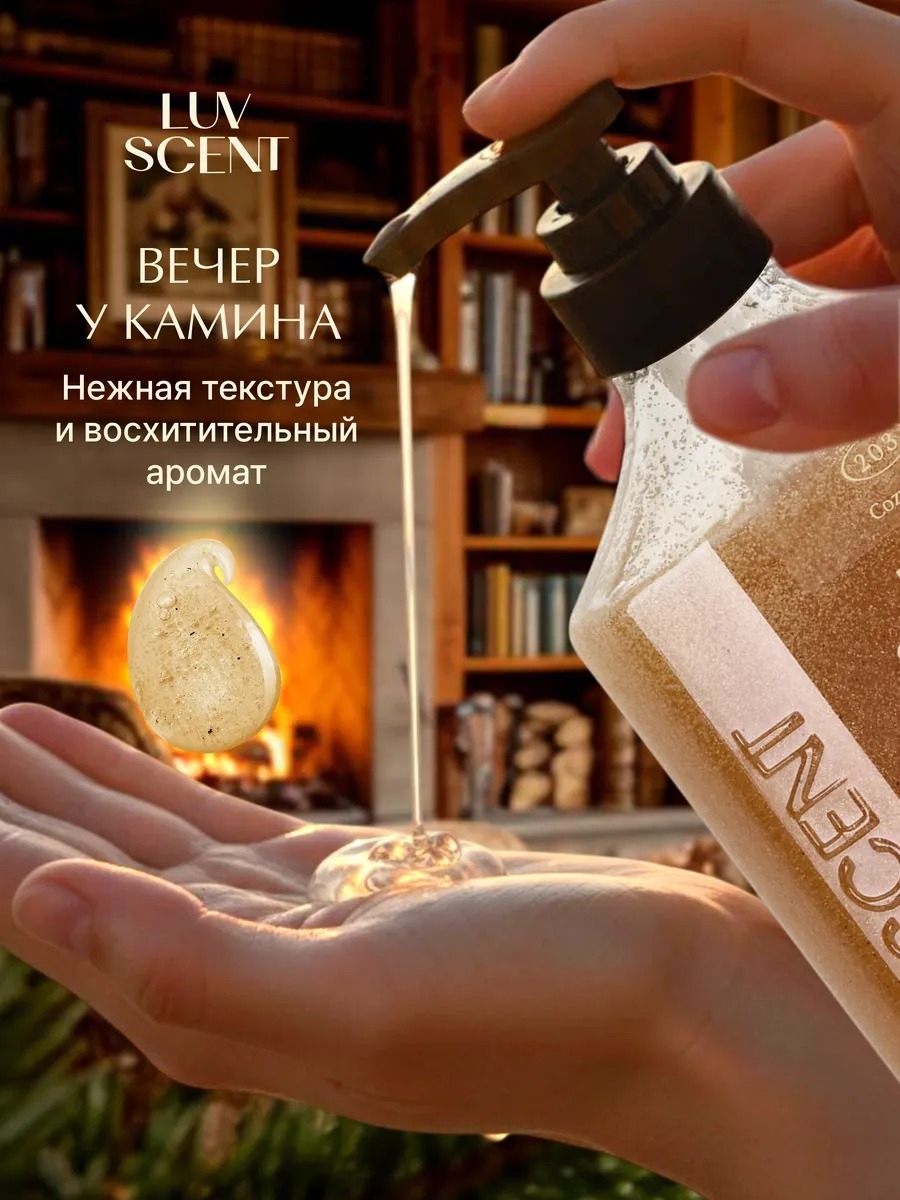 Увлажняющий гель-скраб с натуральными маслами и ароматом от французского парфюмера. Теплый древесный аромат с нотками кедра, словно уютный и неспешный вечер у камина на зимних каникулах в загородном доме. Хруст и щелчки горящего дерева, легкий запах дыма и сладковатый аромат пряностей наполняют теплом и уютом.