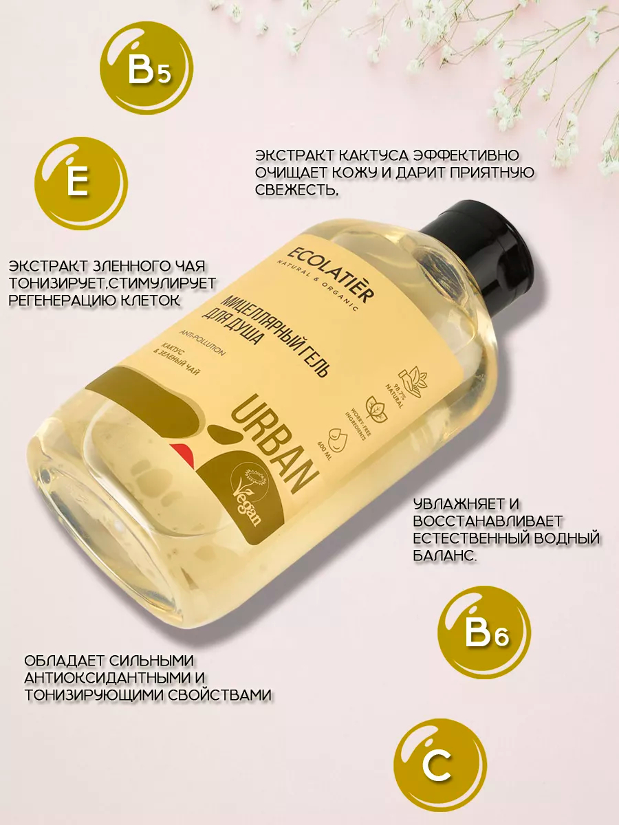 Гель для душа "Мицеллярный. Кактус и зелёный чай" (600 мл)